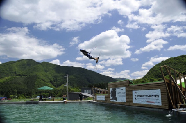 ウォータージャンプは、スキーやスノーボードでプールに飛び込む新感覚のスポーツ!着地に失敗し、どんな体勢で着地しても雪上よりもリスクが少なく誰でも安全にジャンプにトライすることが可能な施設です。