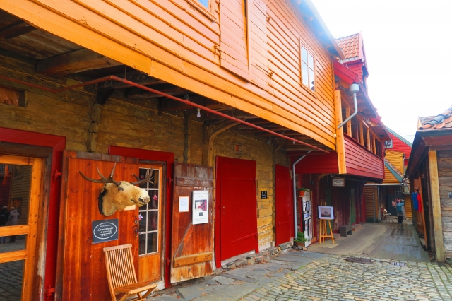 実はここも、アナたちが住むアレンデール王国の街並みのモデルになったと言われています。奥行きのある家屋の間の狭い路地を歩いて行くと、中世にタイムスリップしたような感覚に。迷路のように入り組んだ中に小さなかわいいショップやカフェが入っていて、探検気分も楽しめます。家屋の階段を登ると、ギシギシときしむ音がして、歴史を感じさせます。