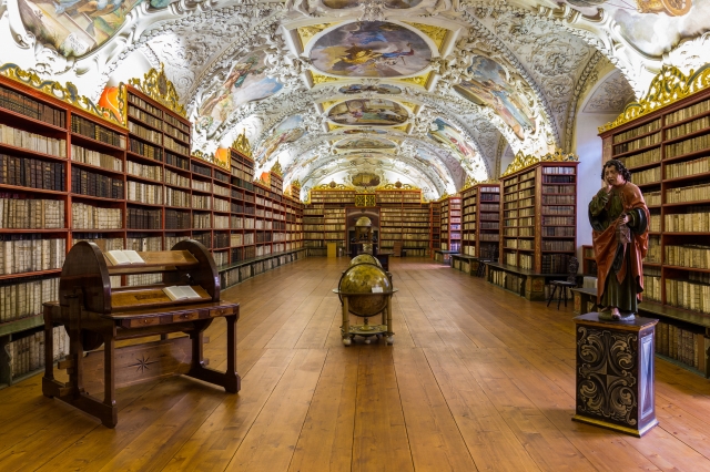 プラハ城からほど近いストラホフ修道院。現在は民族文学博物館になっているこちらの建物には「世界一美しい」ともいわれる2つの図書室があります。4万冊以上の蔵書がある「哲学の間」と地球儀などが置かれた「神学の間」。後期バロック様式で装飾された美しい室内は、プラハを訪れたからにはぜひ見ておきたいスポットです。