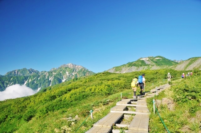 八方池までの道すがら、白馬連山の雄大な風景を眺められるのが「八方尾根自然研究路」です。「八方尾根自然研究路」は、往復約3.3キロメートル、高低差がゆるやかな、比較的やさしいハイキングルートです。天候などさまざまな条件が揃えば、雲海に遭遇することもあります。