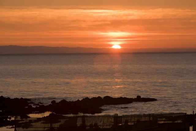 また、海辺の高台に宿があるため、全ての客室から海を眺めることができます。夕陽はもちろん、ヤリイカ漁の漁り火が見られるといいます。特に、3~4月は岸から100mくらいの場所で漁をするので、部屋から肉眼でその様子を見ることができるとのこと。