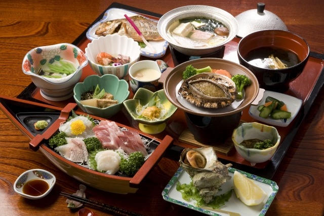 特に夕食はボリューム満点。サザエやアワビ、オーナーの長男が獲るマグロ、鯛、ひらめ、鰤やホタテの刺身その他、津軽の旬のご馳走をふんだんに味わうことができます(※メニューは季節により変更します)。