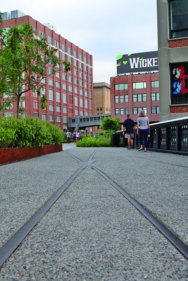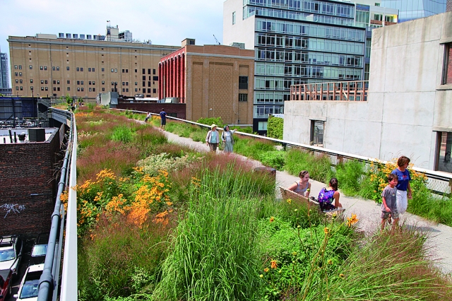 高架貨物鉄道の跡地を再利用した空中公園、ハイライン。約5年の歳月をかけて2014年9月に西34丁目までがオープン、全長約2.3kmの遊歩道になりました。