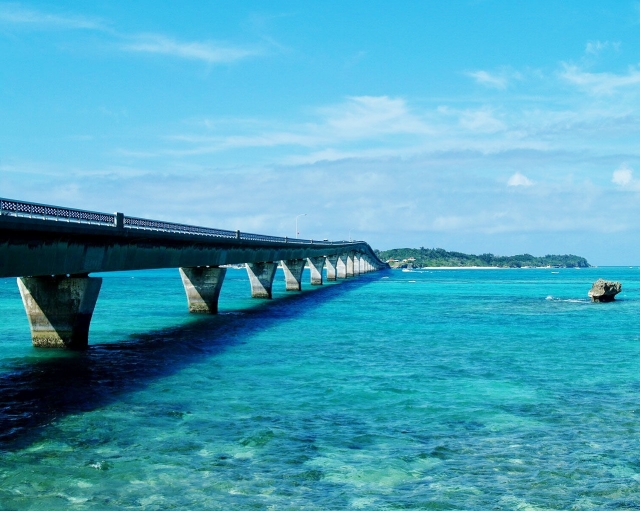 来間大橋は、宮古島と隣の来間島を結ぶ、全長1,690メートルの橋です。宮古島を紹介する時に、真っ先に名前が挙がるほどの有名観光スポットです。1995年の開通以来、絶景ドライブコースとして多くの観光客を魅了しています。
