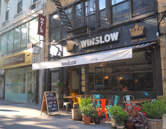 「ウィンズロー(The Winslow)」は、地元の人たちが足繁く通う、とても居心地のよいお店です。今の季節は窓が大きく開放され、外にもテーブルが置かれています。風に当たりながら、お酒とおいしいおつまみを楽しむのはいかがでしょう。ジン専門店ですが、ワインやビールも置いてあります。