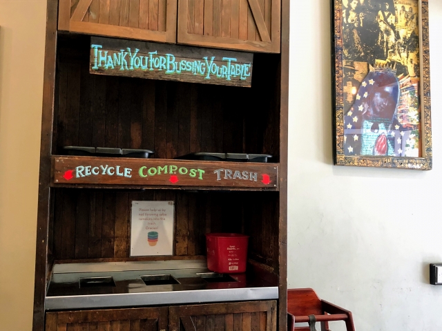 こちらのレストランは、セルフサービスとなります。席を立つ際は、使った食器やグラスなどを設定された場所に戻すようにしてください。