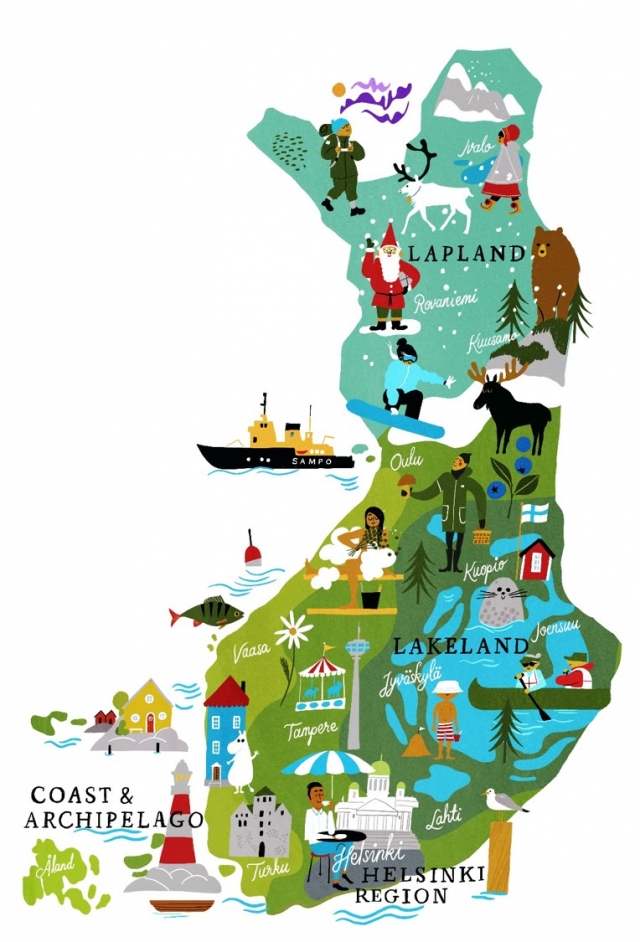 レイクランドでは、湖、森、湖畔のサウナ、サマーコテージといった、まさにフィンランドらしい美しい自然と長時間沈まない太陽を楽しむことができます。群島が集まるエリアでは、群島間をフェリーやサイクリング(橋が架かっている)で移動したり、灯台のある島に滞在したりすることもできます。