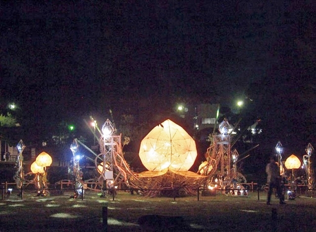 こちら(上の写真)は、「唯心山」から見た「中の島」のライトアップの様子です。