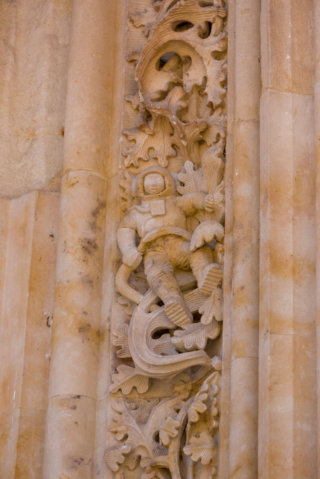 それにしてもカテドラルの装飾に宇宙飛行士を刻むなんて、スペイン人はなかなかお茶目ですね。実は、修復した時期が分かるという実用的な意味もあるのだそうです。いまではサラマンカの人気の撮影スポットになっていて、ツーリストがみんな写真を撮っていきます。