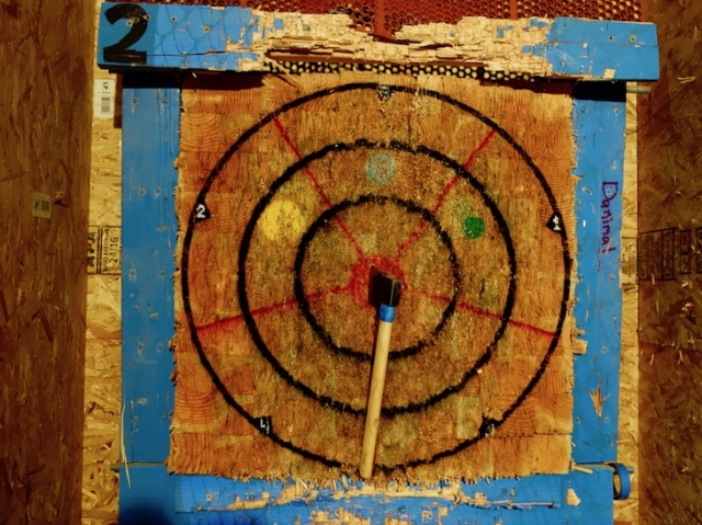 アックス・スローイング(Axe Throwing)は、ダーツのように決められた距離からターゲットに向かって斧を投げ、斧が刺さった位置に振り分けられたポイントを競うゲームです。
