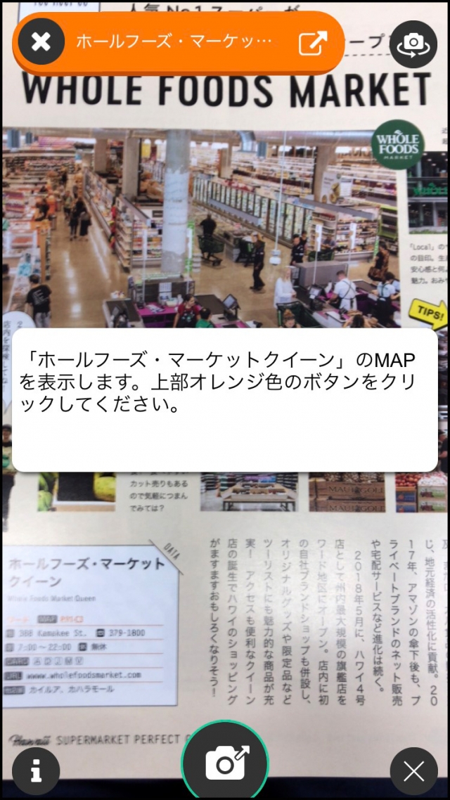 使い方は簡単。無料の拡張現実(AR)アプリ「COCOAR2」をインストールしたスマートフォンのカメラで、ページ番号横に★印がついている誌面や、誌面内の記事をスキャンするだけ。wifiなどの通信環境があれば、今いる場所からのルートやアクセス方法もそのままグーグルマップで検索できますので、とっても便利!