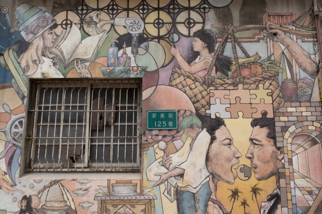 かつて米屋が並んでいた台南の「新美街」。メインストリートから一本路地に入ると、インパクトのある個性的なウォールアートが目に飛び込んできます。不思議に古い家屋とマッチしていて、フォトジェニック! お気に入りのアートの前で撮影したら、SNSにアップしましょ☆