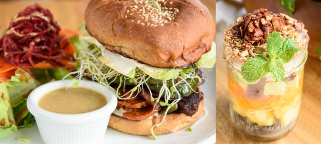 ビーチホッピングで思いっきり遊んだあとはおなかもペコペコ。そんなときにぜひ訪れてもらいたいのが、ワイマナロにあるヴィーガンレストラン。2018年ハレアイナアワード(ハワイのグルメ大賞)の“ベスト・ベジタリアン銀賞”に選ばれるほどの実力店です。野菜たっぷりのハンバーガーやポイ(タロイモをすりつぶしたもの)を使ったフルーツパフェなど、ヘルシーなのにおいしくてボリューミーなメニューがたくさん揃っていますよ。