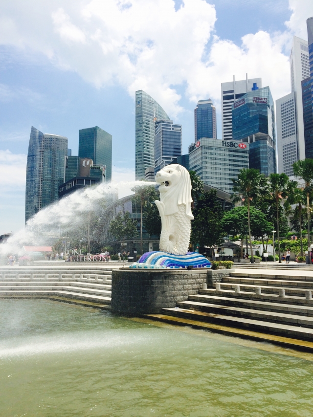 言わずと知れたマーライオン!シンガポールといってまず一番に思いつくのがマーライオンかと思います。上半身はライオン、下半身は魚のデザインです。その昔王族によりこの地をシンガ(ライオン)+プーラ(都市)=シンガプーラ(シンガポール)と名付け、国の守り神として祭ったという伝説があります。