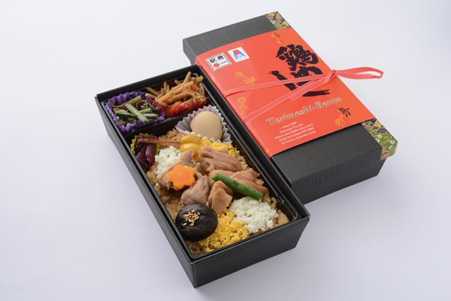 鶏めし弁当は、秘伝のスープと醤油で味付けしたごはんの上に、甘辛く煮付けた鶏肉が乗っています。ごはんには秋田県発祥のお米「あきたこまち」を、日本と同じ製法で炊き上げています。同駅弁は、JR 東日本主催「駅弁味の陣2015」にて「駅弁大将軍」を受賞した一品。今回の限定販売では、特別に販売当初の掛紙や今回の販売用にデザインした掛紙など、合わせて5 種類の掛紙が用意されています。