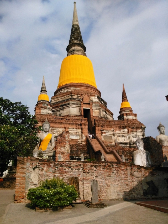 1357年、セイロン(現スリランカ)に留学していた修行僧たちが帰国した際に、瞑想するための場所として、ウートーン王によって建立されました。別名「ワットプラチャオプラヤータイ」とも言われています。敷地内には、遠くからでもひときわ目を引く、スリランカ様式の高さ72mの仏塔があります。1592年、アユタヤ王朝へビルマ軍が侵攻してきた際に、第19第ナレスワン王とビルマの王が騎象戦での一騎打ちを行い、ナレスワン王は見事戦いに勝利しました。この勝利を記念して、「プラチェディチャイモンコン」と命名された、大きな仏塔が建立されました。幸いにもワットヤイチャイモンコンは市内から少し離れた場所に位置しているため、以降200年、アユタヤ王朝がビルマ軍により激しい攻撃を受けた際にも戦火をまぬがれました。現在も仏塔には、参拝者や観光客が登る事ができ、周囲の眺望もお楽しみ頂けます。