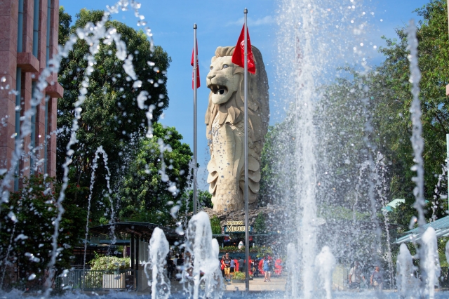 高さ37mを誇るシンガポール1大きいマーライオン。マーライオンタワーの頭上と口の中が展望台となっており、天気が良い日にはインドネシアの島々まで見えます。場所は、セントーサ島の中心地点。セントーサ島内モノレールのインビア駅の目の前です。ユニバーサルスタジオシンガポールから一駅と、アクセスも良く徒歩でも全然歩ける距離にあります。