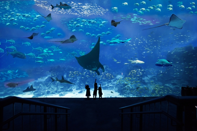 まるで海のトンネル「シャーク・シー」やヒトデやウニに触れる「コーラル・ガーデン」、5万匹の海洋生物が泳ぐ、大迫力の巨大水槽「オーシャンギャラリー」が人気の水槽。オプショナルツアーでも約1時間弱のフリータイムを設けられるので、館内をゆっくりと見学できます。炎天下の中歩き疲れた後にエアコンの聞いた水族館は別の意味の爽快感もあります。