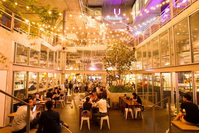 同じトンロー地区にあるおしゃれフードコートで、腹ごしらえはいかが。2016年に開業した「ザ・コモンズ」は吹き抜けの空間が心地よい、半野外の作りがナチュラルおしゃれなモールです。1階にはバンコクで話題のフードショップがズラリ。タイ料理やファストフードはもちろん、世界のビールが楽しめるお店や、ロブスター専門店、ナポリピザなども楽しめます。好きなジャンルの料理をいろいろと注文して、みんなでシェアするのも楽しいはず。
