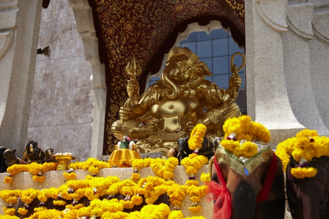 最強神が祀られているのは「プラ・トリームールティ」だけではありません。すぐ隣に並んで建つ祠は、商業や学問の神「ガネーシャ」が祀られていて、御利益いっぱい。シゴトや就活に悩む女子や試験を控える学生さんなど、ひそかに勝ち組になりたいと願う女子はこちらもマスト参拝です。