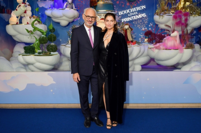 2018年のクリスマスシーズンを彩るオープニングセレモニーでは、高級宝飾品ブランドブシュロンとコラボしたショーウィンドーの前に、女優レティシア・カスタさんとプランタンCEOパオロ・デ・セザレさんが登壇しました。点灯スイッチを押し、毎年10,000,000人以上が行き交うオスマン通りのイルミネーションがスタートしました。