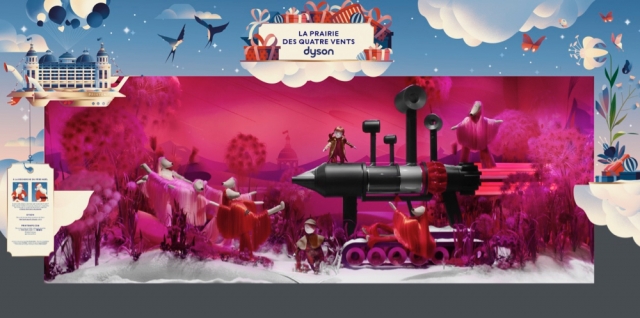 ジュールとビオレットが向かう先々では、2018年にプランタンがコラボしたブランドによる、さまざまな場所が待ち受けます。森林の谷ではカナダグースの銀色の熊、黄金の砂丘ではブーツを履いた羊、四方から風が吹く大草原では毛むくじゃらのダイソンのグレイハウンド、甘味の土地ではハーゲンダッツの雌牛が登場します。