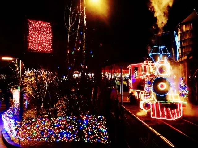 「オレゴン動物園」では、ライトアップされた園内を走る列車も人気のアトラクションです。かなりの待ち時間を要しますが、車窓から眺めるイルミネーションはとても美しいですから、一度は体験する価値があります。例年、家族連れに大人気のアトラクションです。