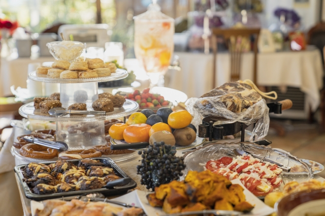 約15,000坪の広さを持つ紫竹ガーデンは、帯広駅から車で約30分、十勝平野のまっただ中にありました。2,500種以上の花々が、季節ごとにさまざまな表情を見せてくれるガーデンでは、秋色に染まった野草が美しい風景を作ってくれていました。さて、本日の主題である朝食はというと、40種類もの料理が並ぶ、まさに絶景でした。十勝の旬の食材をふんだんに使ったこだわりの料理は、朝早くからスタッフの方々が手作りしてくれたものばかり。代表の紫竹昭葉さんは「朝食は一日のエネルギー。おいしいもの、新鮮なものを食べてもらいたい」という気持ちから「朝食」の提供を始めたそうです。朝食は要予約で、8時30分から10時まで。スコーンやハーブティ、デザートもついているビュッフェスタイル。紫竹ガーデンで特別な朝の時間を過ごしてみてはいかがでしょうか?