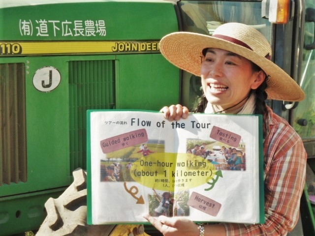 「さあ、十勝の畑を歩こう!」というキャッチフレーズに引かれて「農場ピクニック」ツアーへ。観光を目的とした農場ではなく、普段は立ち入ることができない「本物の畑」に入ることができるなんて、とってもわくわくしますね。農業のことを楽しく理解して、ルールを守りながら、ガイドさんと一緒に畑の中へ。4月から10月までの間、4軒の農場でピクニック体験をすることができますが、今回うかがったのは、小麦や長いもの生産をしている帯広市の道下広長農場さん。さっそく作業ウエアを着用し、専用の長靴に履き替えて、小麦畑に入ってみます。「さあ、みなさんで踏んであげてください!」と代表の井田さん。小麦を踏みしめ、柔らかい土の感触が長靴から伝わってくる。十勝の農場のこと、農業の考え方などを知った、貴重な時間となりました。