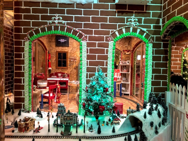 このクッキーの家は、実際に中に入ることができ、ジンジャーブレッドクッキー独特のスパイシーで甘い香りを体感できます。また、家の中を走るミニチュア列車だけでなく、屋根の煙突部分にあるサンタクロースの動く足や2階の窓からトナカイが揺り椅子に座っている様子など、凝ったディスプレーは大人でもしっかり楽しめます。