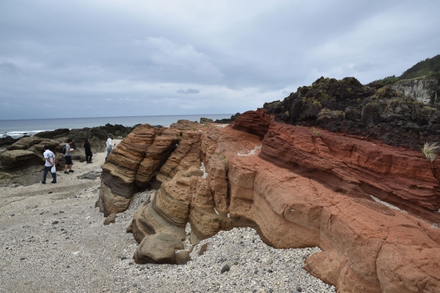 粟国島は火山活動によって作られた島ですが、今でもその名残りが残る場所を実際に散策することができます。島の南側にあるヤヒジャ海岸は特にその面影を見ることができる地形が残っており、かつての火山活動によってできた岩石や地層が見られます。