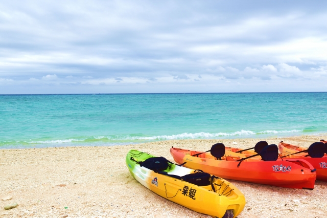 粟国島では、ダイビングスポットが多くダイバー必見の美しい海が特徴の一つですが、そのほかのマリンスポーツも充実しています。たとえば、画像のシーカヤック。白い砂浜が1km以上も続く、ウーグの浜(長浜ビーチ)から、透明度の高い楽園のような海に漕ぎ出しましょう。懇切丁寧なインストラクターが付きますので、初めての方でも安心です。
