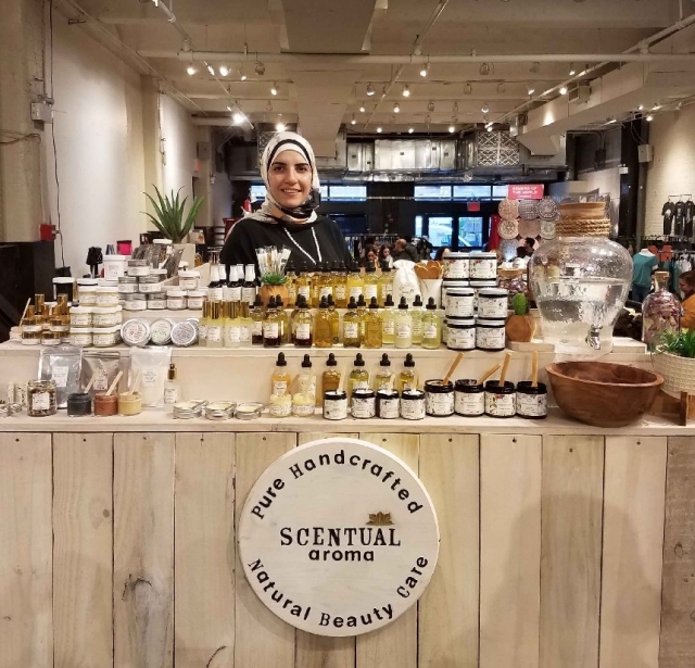 こちらは、「Scentual Aroma(センチュアル・アロマ)」というニューヨーク生まれ、ニューヨーク育ちのオーガニックブランドです。こちら(上の写真)の創業者イーマンさんが、すべて手作りしています。