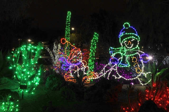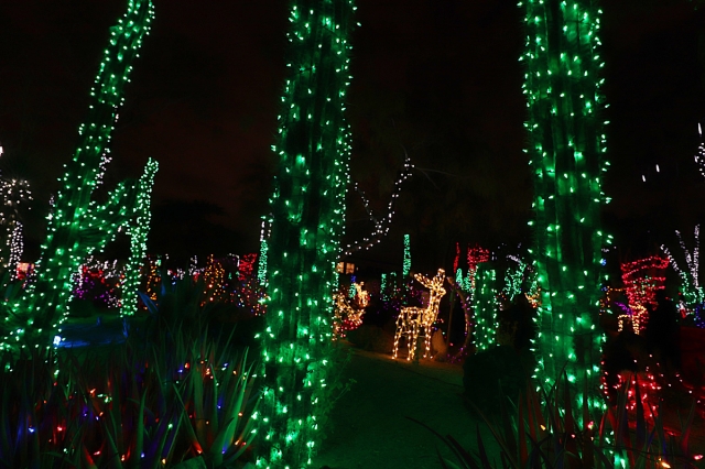 ガーデン内では、あちらこちらで子供連れのファミリーを見かけます。豪華絢爛ではないですが、「ホリデー・エセル・M・カクタス・ガーデン」では、ラスベガスのゴージャスでエレガントなイルミネーションとは違った、ほのぼのとしたあたたかいイルミネーションが楽しめます。