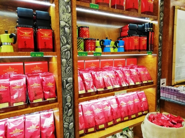 家庭でもここの伝統的な味を再現できるようと、コーヒー豆と挽いたコーヒー粉がお土産用に販売されています。また、直火式エスプレッソメーカーやコーヒーカップも売られていますので、コーヒーとセットで買うことができます。