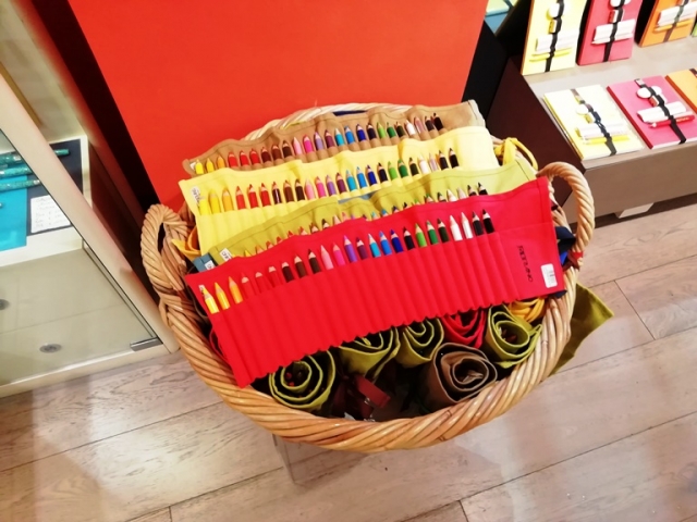 店内には、紙で作られた雑貨、アクセサリー、魅力的でシンプルなデザインが施されているカレンダー、ノート、色鉛筆、さらには木で作られた鞄などが並び、歩いた先々で買いたい衝動に駆りたてられます。この ”メイド・イン・イタリー” のデザインと紙は、イタリア人の間でも大事な人へのプレゼントとして重宝がられるほど人気です。