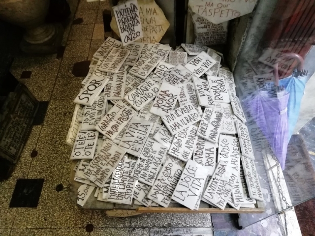 ローマの観光名所のひとつであるスペイン広場近くのVia Margutta(マルグッタ通り)には、ローマで最後の大理石工とされるフィオレンティーニ(Fiorentuni)氏の工房があります。こちらの工房では、オリジナリティーに溢れた表札を作ってくれます。