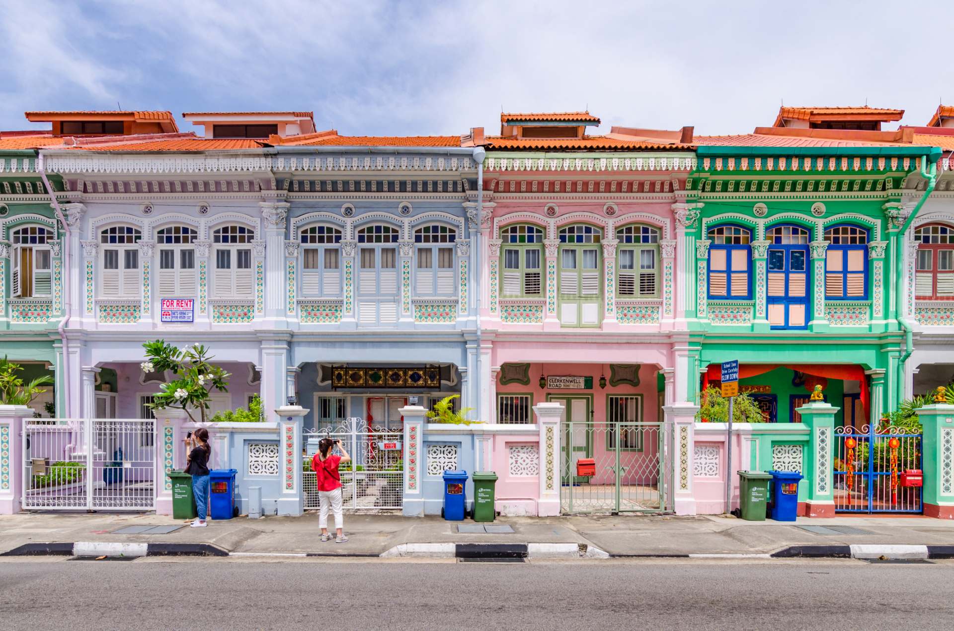 美しいプラナカン・ハウスが残る「カトン」エリアには、中国やマレー、ヨーロッパの文化がミックスした独特のスタイルの建築が建ち並ぶストリートがあります。「クーン・セン・ロード」という道で、パステルカラーの外観が愛らしい家々はいまも実際に住居として使われています。住人の迷惑にならないように撮影を楽しみましょう。