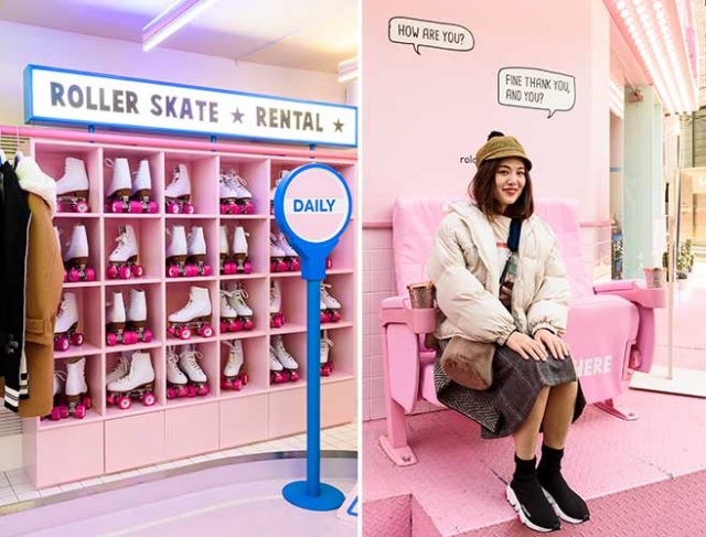 もうひとつ、人気アパレルブランド「ローラローラ」のショップも撮りどころ満点。スクールルックがテーマだけに、ロッカー風の棚に商品が陳列してあったり、地下にはローラースケート場があったり!?、店内でかわいいパトロールが止まらなくなりそう。お店の外には、自分入りで撮ってすぐにポストしたくなる椅子が!