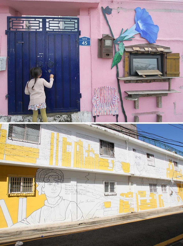 エリア全体が屋外美術館のような梨花洞壁画村。アーティストや住民が描いたという壁画はどれもカラフルで独創的です。トリックアートのようになっているものがあるので、カメラを通してアートを見るとグッと印象が変わります。また最近人気のエリア、聖水洞にもウォールアートがチラホラ。両エリアとも人気ドラマの撮影などに使われたことがあるため、いつもにぎわっていますが住宅地なのでルールを守って静かに観賞してくださいね。
