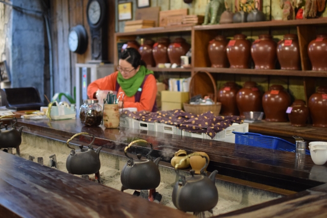 九份には茶芸館がたくさんあります。九份は人が多いので、休憩がてら茶芸館に入り、お茶も楽しむのがおすすめです。「九份茶房」は古い建物のため、店内もノスタルジック。茶器の販売もしてました。