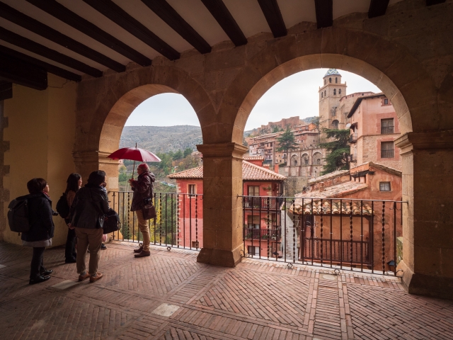 アラゴン州の州都サラゴサから鉄道で2時間半の距離にあるテルエルは、ムデハル様式(ムデハルとは、レコンキスタ後もスペインに残ったイスラム教徒のこと)の町並みが有名で、もともと、世界遺産に登録されたのは「テルエルのムデハル様式の建築物」でした。後にサラゴサなどのイスラム建築と併せて「アラゴンのムデハル様式の建築物」へと発展した経緯があります。ここテルエルこそが、もっともイスラム文化の薫りを残している町で、見渡せばイスラム風の塔がいくつも聳えています。エキゾチックなテルエルで歴史に想いを馳せ、さらに近郊の美しい村アルバラシンにも足を延ばしました。