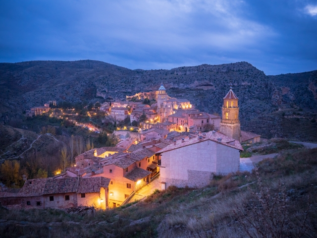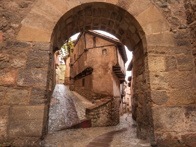 テルエルから車で国道を40分ほど西へ、森や丘を越えて走ると、渓谷の上に聳える城塞都市、アルバラシンに到着します。もともとはイスラム教徒の難攻不落の小王国がありました。12世紀にキリスト教徒の領地となってから、今あるカテドラルを中心とした町並みが築かれています。切りたった丘の上にある家並みを見ると、確かに難攻不落の町だと思います。