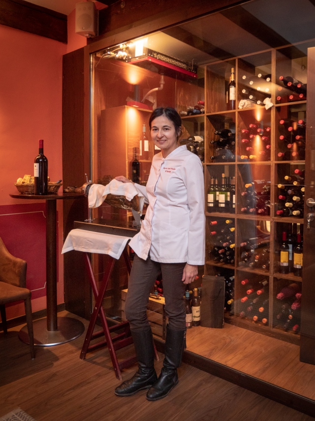 シェフのマリア・ホセMaría José Medaさんはアルバラシン出身。大学卒業後に、建物の修復ワークショップで夫となるセバスティアンさんと出会って意気投合し、ふたりで古民家を改修してオスペデリア(宿と料理店を兼ねた店)を開業することにしました。夫がマネージメント、妻がシェフを担当しています。この時マリアさんは本格的な料理は未経験だったので、母親から料理を習いながら、地元産の食材を使用して、質の高いクリエイティブな郷土料理を模索します。そして2013年にミシュランの星を獲得しました。