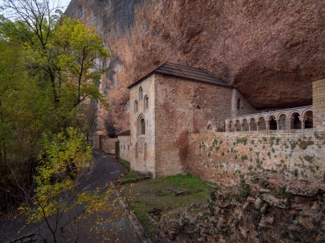 もともとこの崖の下は、古代から神々のおわすパワースポットとして近隣の人々の信仰を集めていたのですが、キリスト教が普及するにつれて、もとの神々がキリスト教の神に置きかわり、やがてキリスト教の聖地となっていきます。また、中世には、イスラム教徒の攻撃を避けて信仰を守るのに適した、辺鄙な立地でした。