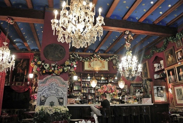 一歩店内に足を踏み入れると、独特の雰囲気に圧倒されるカフェバーが、「カフェ・デ・ラス・オラス(Café de las Horas)」です。うまく言葉で説明できないのですが、ネオバロック調とでもいうのでしょうか、ゴテゴテしたクラシックな装飾がとてもセンスよくまとまっているオリジナリティーあふれる空間なのです。