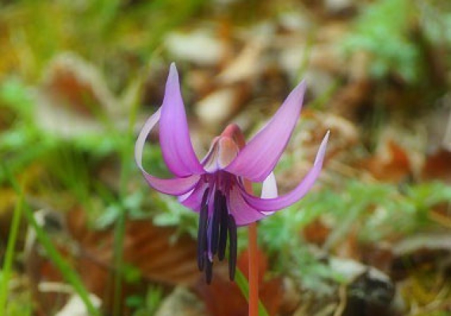「幕谷カタクリ群生地」では、例年、4月中旬から下旬、セツブンソウが終わりかけるころ、スプリング・エフェメラルのなかでももっとも代表的な花、うつ向き加減に咲く姿が愛らしいカタクリが咲き始めます。一輪一輪に存在感がある紫色の可憐な花ですが、咲き始めてから枯れるまでわずか2週間足らずですから本当にはかない姿です。