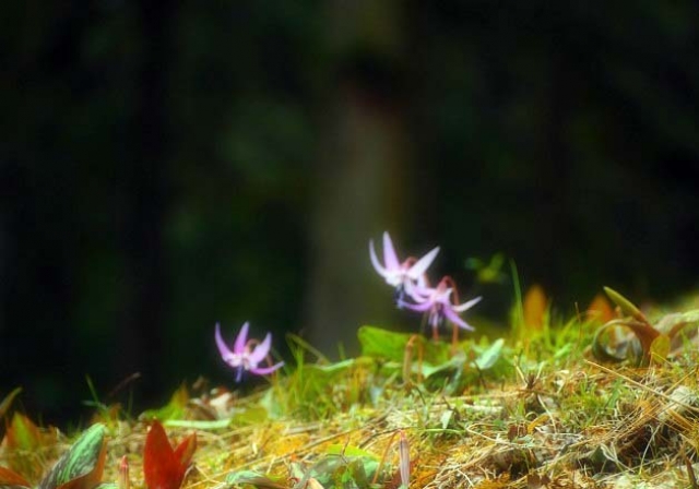スプリング・エフェメラルと呼ばれるこれらの花は、とっても小さな花々です。撮影に夢中になりすぎて、うっかり足元の花を誤って踏まないように注意してください。もちろん、「かわいい~。欲しい~。」といって、手折って持って帰るなんて論外ですよ。