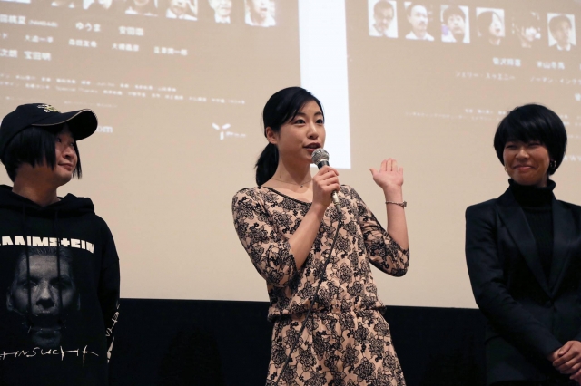 監督の作品説明後は、この日集まった一部の出演者が監督に促されて壇上へ。主演の米山冬馬さんは、「横川監督とは15年くらいの付き合い。今回このような作品が完成して本当に嬉しく思います」と挨拶し、菊沢将憲さんは、「クラウドファンディングの支援者さまたちと作り上げた貴重な一本になった」とコメントしました。