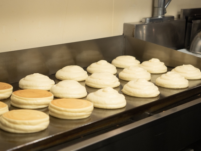 乳製品を中心に北海道産原材料を使い、一つひとつを約20分かけて焼き上げる生地は、オーナーが子どもの頃に食べていたふわっふわホットケーキを再現しています。